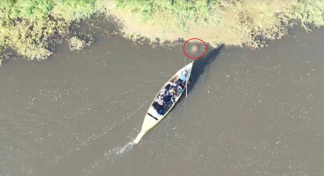 Arkadaşının terliğini almak için suya girdi