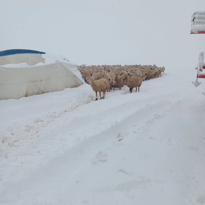 600 koyun kar altında kaldı, köylüler yardıma koştu