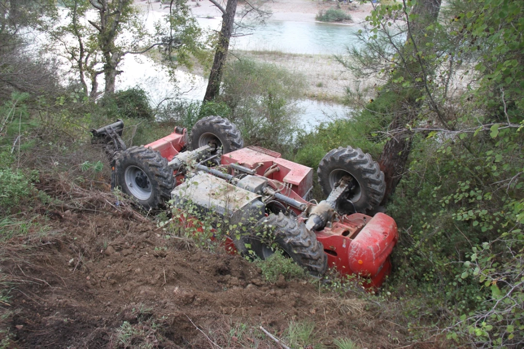 Antalya'da Şarampole Yuvarlanan Dev Makine İle Gelen Tehlike