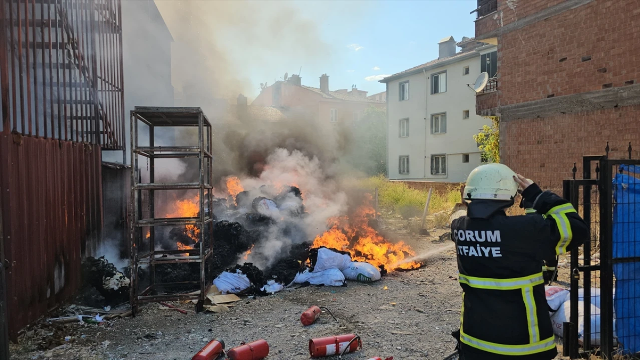 Çorum'da tekstil atıkları alanında çıkan yangın, hızlı müdahale sayesinde kısa sürede kontrol altına alındı.
