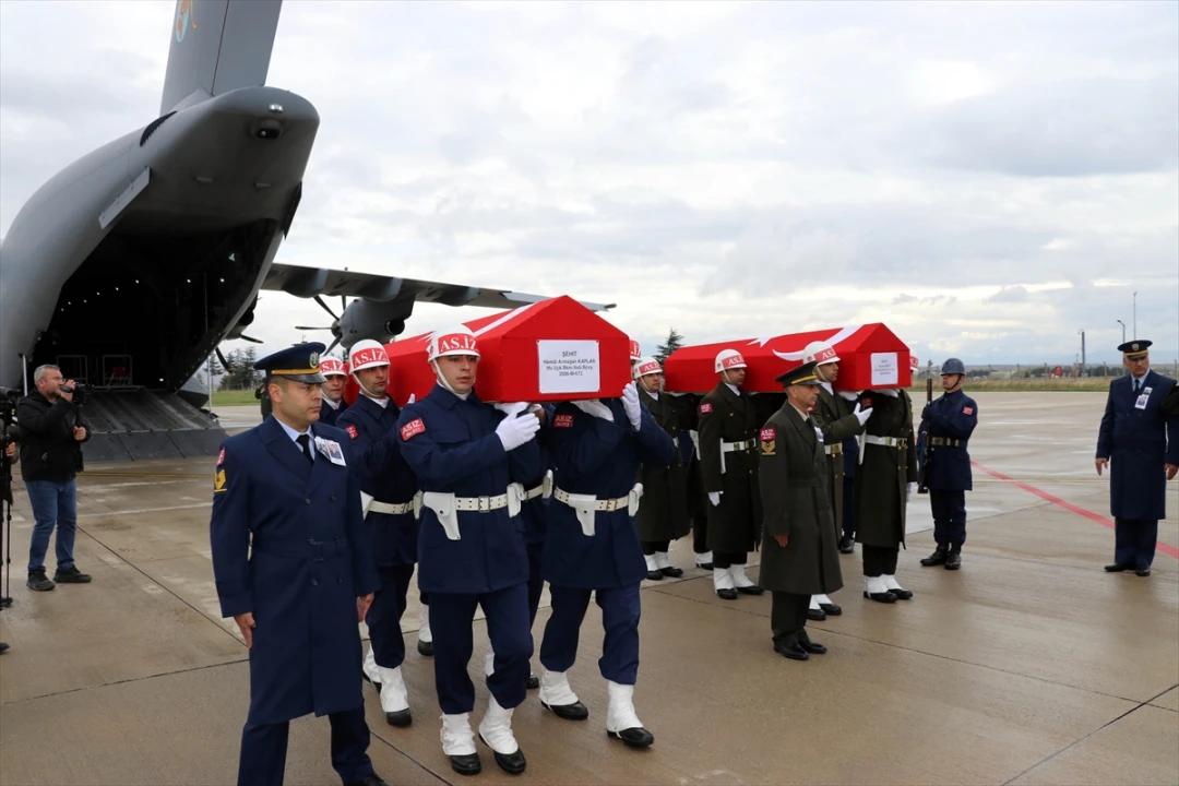 Türk bayrağına sarılı tabutları taşıyan askeri uçak, Amasya Merzifon Havalimanı'na indi.